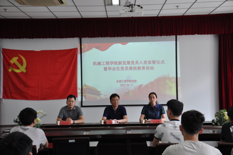 学院党委副书记、副院长孙汉中带领新发展党员宣誓以及老党员重温入党誓词。全体辅导员、学生党员参加活动。
