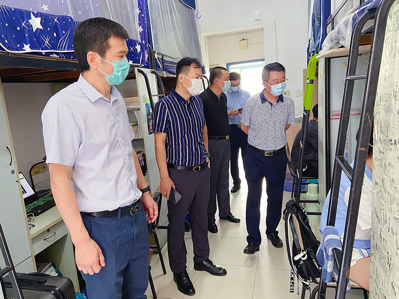 9月27日上午,565net必赢客户端领导深入学生宿舍看望第一批返校学生,并巡查上课情况。