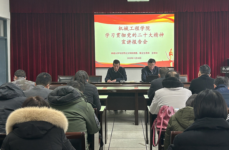 为深入学习贯彻党的二十大精神,引导全体教职工学思践悟新思想、砥砺奋进新征程,11月30日下午,565net必赢客户端党委召开党的二十大精神宣讲报告会。马克思主义学院教授、硕士生导师,南通市委理论宣讲团成员王明华应邀作宣讲报告。