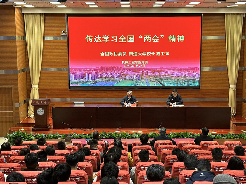 施卫东指出今年全国两会是在全面贯彻党的二十大精神开局之年召开的重要会议,他详细介绍了此次全国两会的基本概况、主要议程、主要特点和分组讨论审议情况。他还结合自身围绕教育、科技、安全、民生等领域提交提案情况,介绍了自己参政议政履职情况。施卫东重点传达了习近平总书记在参加江苏代表团审议和在民建、工商联界委员联组会时的重要讲话精神,并结合政协提案办理、政府工作报告中关于教育科技等方面内容畅谈参会感受。他鼓励学院师生要牢记习近平总书记的重要讲话精神,深入学习贯彻全国两会精神,厚植爱国情怀,锤炼过硬本领,勇于干事创业,争做担当民族复兴大任的建设者和接班人。报告内容既具理论高度,又有实践维度,对全体师生深入学习贯彻全国两会精神具有非常重要的指导意义。