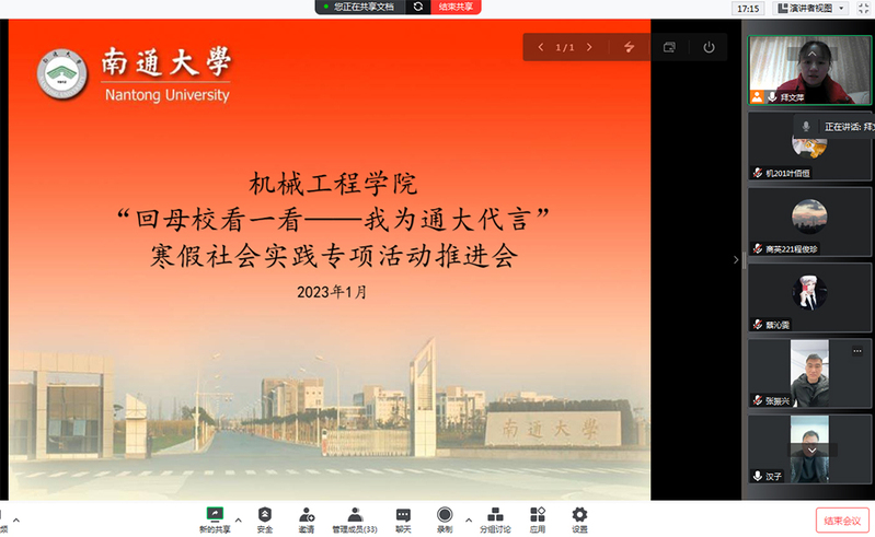 1月30日,565net必赢客户端召开“回母校看一看——我为通大代言”寒假社会实践专项活动推进会。