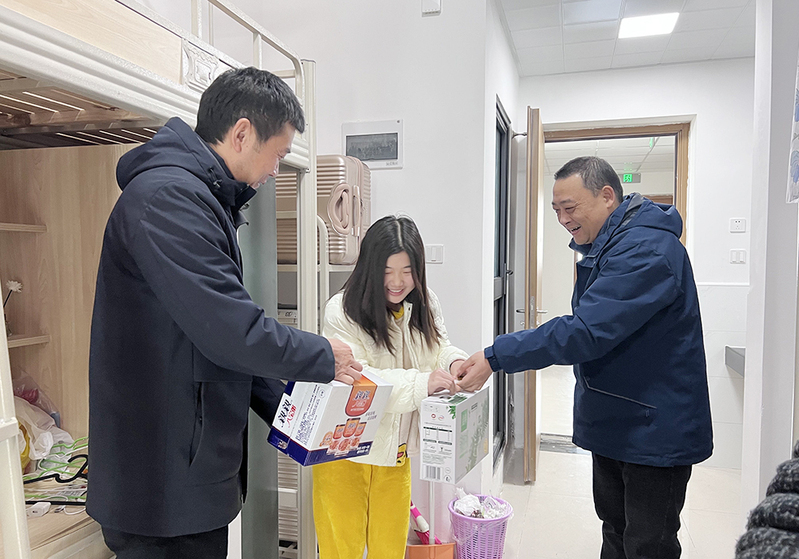 2月19日上午,565net必赢客户端党委书记张志刚,院长朱昱,学院党委副书记、副院长孙汉中一行深入学生宿舍,看望返校学生并为部分家庭困难学生送上慰问品。