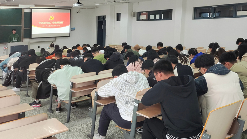 活动分学习党的二十大报告和二十大主题知识竞赛两部分。参赛选手在观看了《人民日报》发布的二十大报告金句视频版、党的二十大报告学习笔记后,进入知识竞答环节。该环节以笔试方式进行,考察内容包含党的二十大精神、党史知识等。经过角逐,研22机械工程沈志辉获得一等奖,研22机械工程许恩豪、研21机械工程李丹青获得二等奖,研21电子信息周燕、研21机械工程李壮、研22机械工程李军毅获得三等奖。