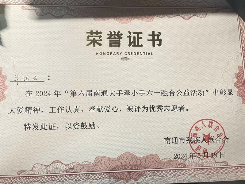 5月19日,为庆祝第34个全国助残日,由南通市残联与中国银行南通分行主办的“第六届南通大手牵小手六一儿童节融合活动”在江苏商贸职业学院开展,必赢官网红十字分会学生志愿者受邀参加。
