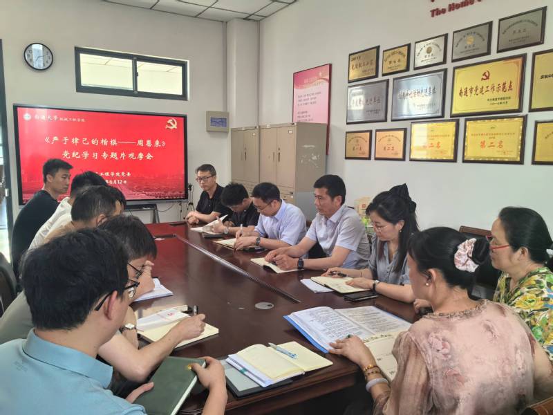 6月12日565net必赢客户端党委召开《严于律己的杰出楷模——周恩来》党纪学习专题片观摩会。