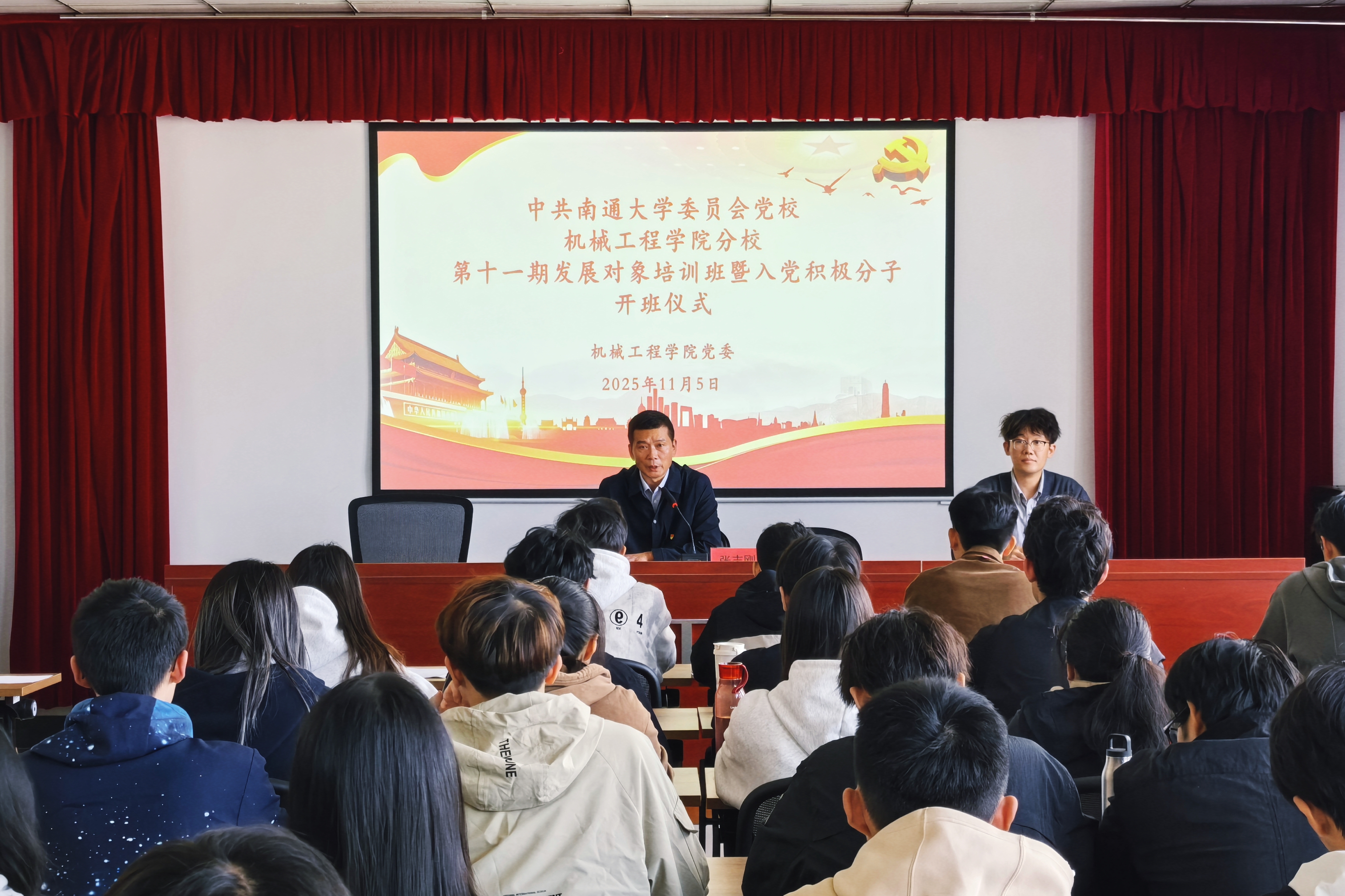 11月5日下午,学院党委书记张志刚以《青春向党砺初心,奋楫扬帆写答卷》为题讲授首场党课。他围绕青年群体与党的使命担当的内在联系,系统阐释“听党话、跟党走”的核心要求,激励学员以“青春之我、奋斗之我” 立足学业岗位勇担使命,为本次培训奠定思想引领基调。